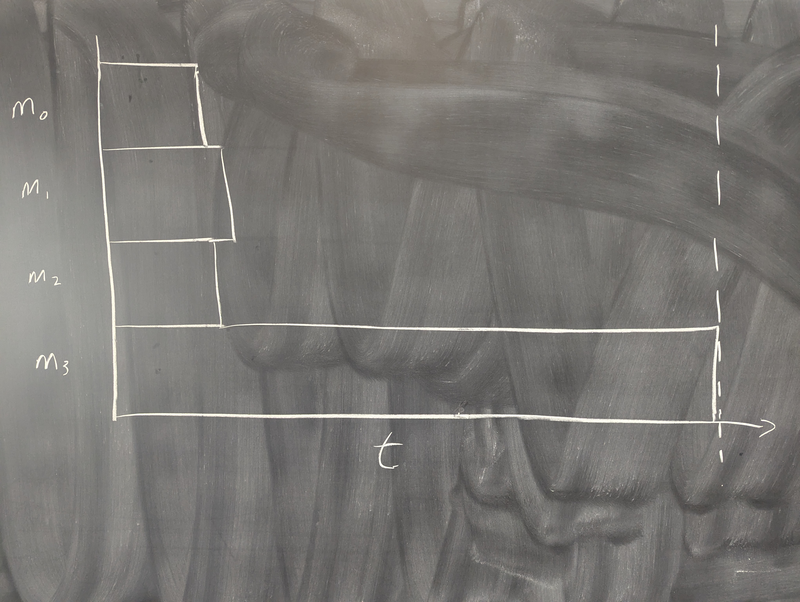 In distributed systems design, it is often the case that you need to divide N work items among M machines to compute in parallel. For "embarrassingly parallel” problems, you can choose an owner machine for a work item by hashing the work item’s ID and taking the modulus M. Any good hash function will have a uniform distribution, so this uniformly assigns work items to machines. This diagram shows the runtime of several machines which have been assigned roughly equal amounts of work: